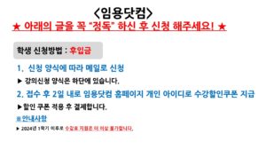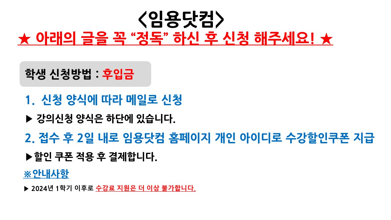 공지사항 홈공지사항공지사항 ★ 임용닷컴 2026년 강의 안내표 ★(2025.12.17) ★ 임용닷컴 2026년 강의 안내표 ★(2025.12.17) 사범대학2025-12-17 페이스북 트위터 구글플러스 이메일 프린트 이전공지사항