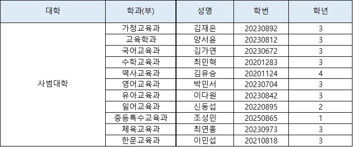 | [2025학년도 2학기] DEAN’S LIST 선정자 안내 | |