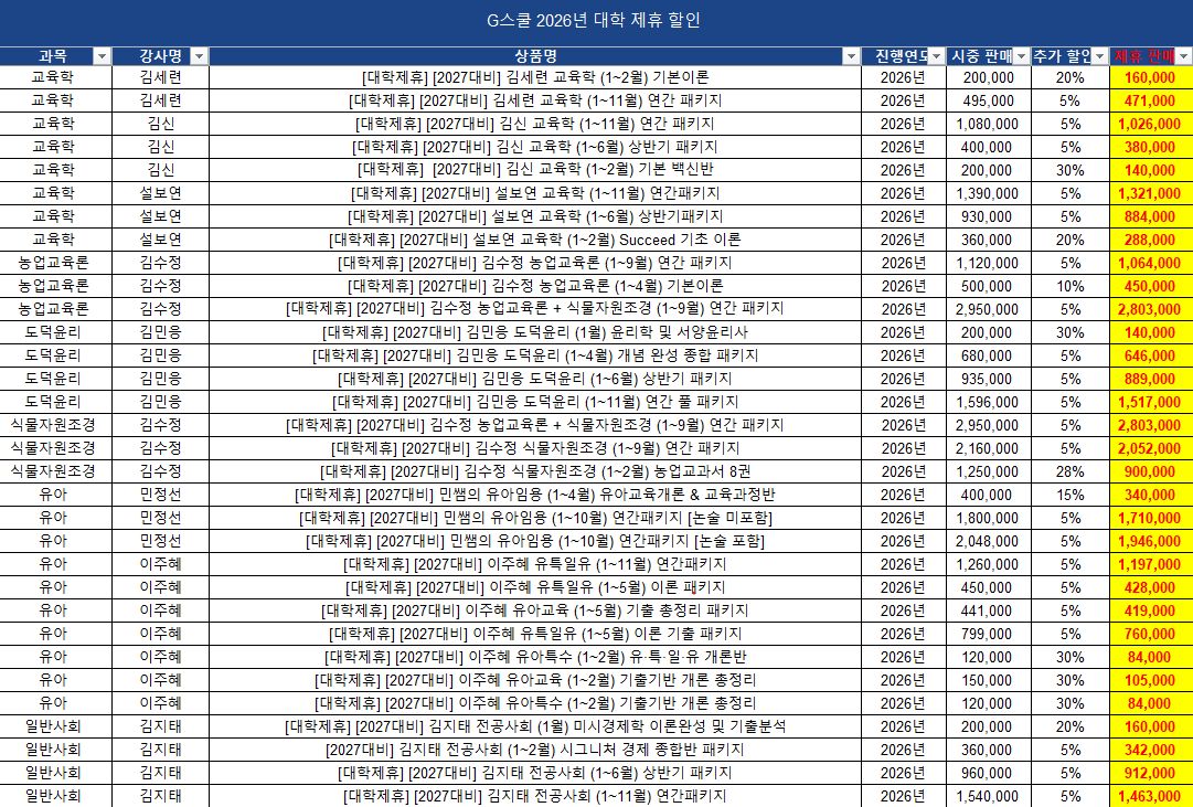 ※ G캠퍼스에 게시된 상품별 할인 가격은 중복 할인이 적용되지 않기 때문에 G스쿨 페이지에 게시된 얼리버드의 상품 가격보다 높을 수 있으니 G스쿨 페이지에 나와있는 상품과 가격 비교하여 구매하시길 바랍니다.