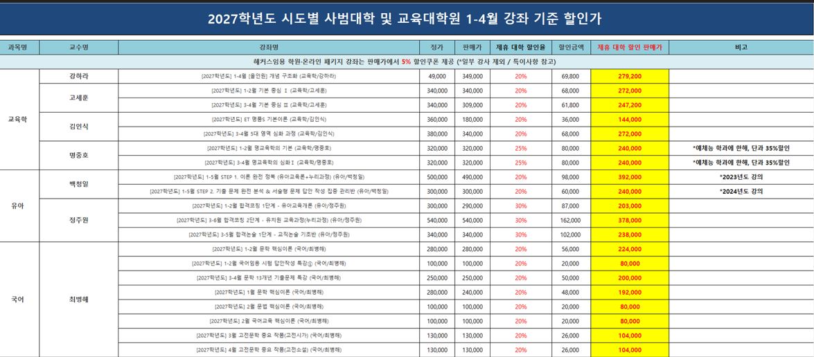 [해커스 제휴대학 할인 쿠폰 지급 방법 변경] 2. 하단 메일 통해, 해커스임용학원에 직접 메일 발송 ★ 중요 ★ : 이름 / 전화번호 / 해커스 ID / 재학증명서 (발급 3개월 이내) / 쿠폰 신청 강의(인강/직강 여부 필수) 2. 할인 쿠폰의 경우, 신청일로부터 1~3일 내로 지급되며 지급일 기준으로 14일 간 사용 가능한 점 안내 부탁 드립니다. 해당 기간에만 사용 가능하며, 14일 이내 신청하지 못해 쿠폰 소멸된 경우 재지급되지 않는 점 양해 부탁 드립니다. 3. 제휴 쿠폰은 올해 강좌를 대상으로만 사용이 가능합니다. (과년도 / 내년도 강의는 신청 불가능합니다.) 4. 정규 강좌에 한해, 판매가를 기준으로 할인율이 적용되며 각종 이벤트와 중복 적용되지 않습니다. 5. 할인율의 경우 강좌별로 상이하므로, 할인 강좌 리스트 반드시 참고하시기 바랍니다.