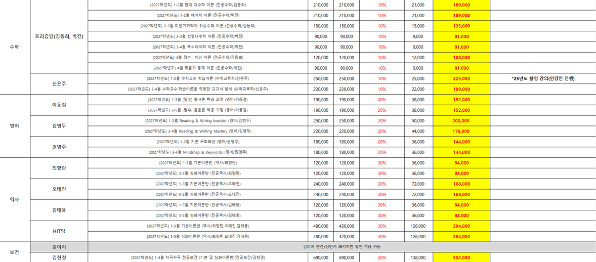 | ★ 해커스 2026년 1~4월 강의 안내표★ (2025.12.31) | |