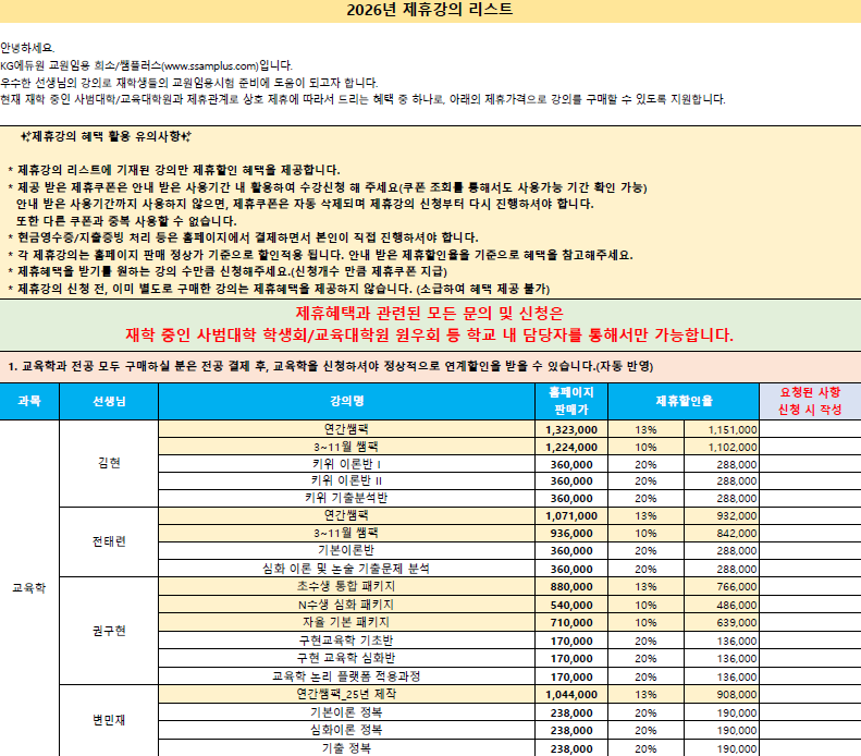 공지사항 홈공지사항공지사항 ★ 희소고시 2026년 5월 강의 안내표 ★(2026.04.21) ★ 희소고시 2026년 5월 강의 안내표 ★(2026.04.21) 사범대학2026-04-21 페이스북 트위터 구글플러스 이메일 프린트 이전공지사항다음